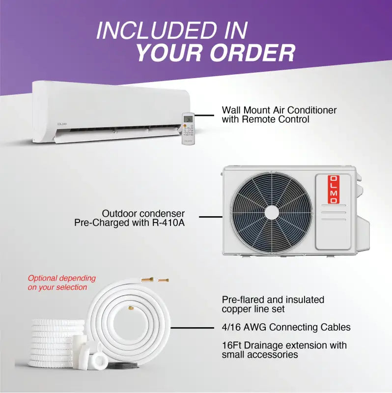 18,000 BTU 230V Ductless Mini Split AC Wall Mounted OLMO Alpic Series Heat Pump