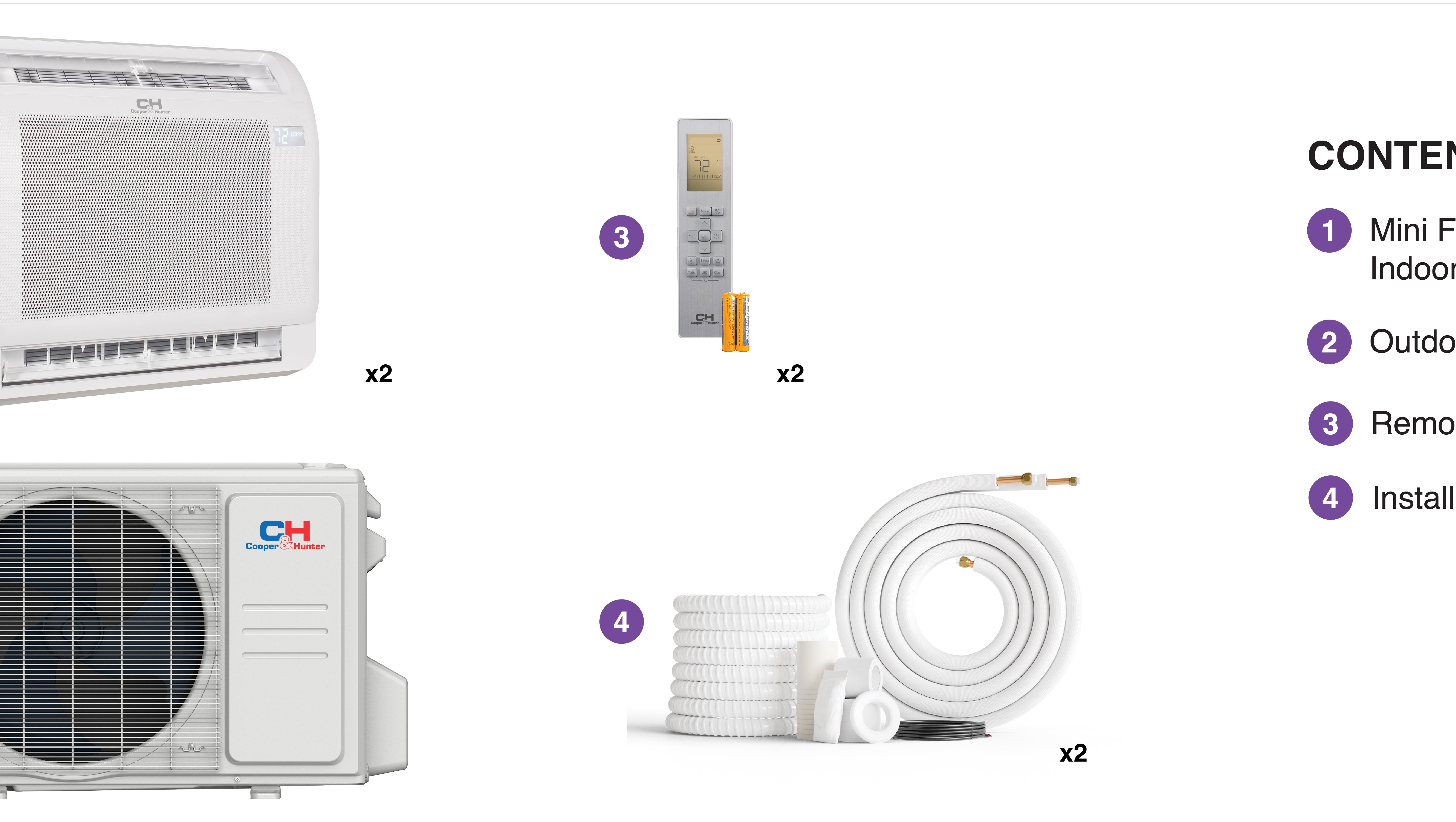 Cooper & Hunter 2 Zone 18,000 BTU OLIVIA Ductless Mini Split AC MIni Floor Consoles 12k+12k