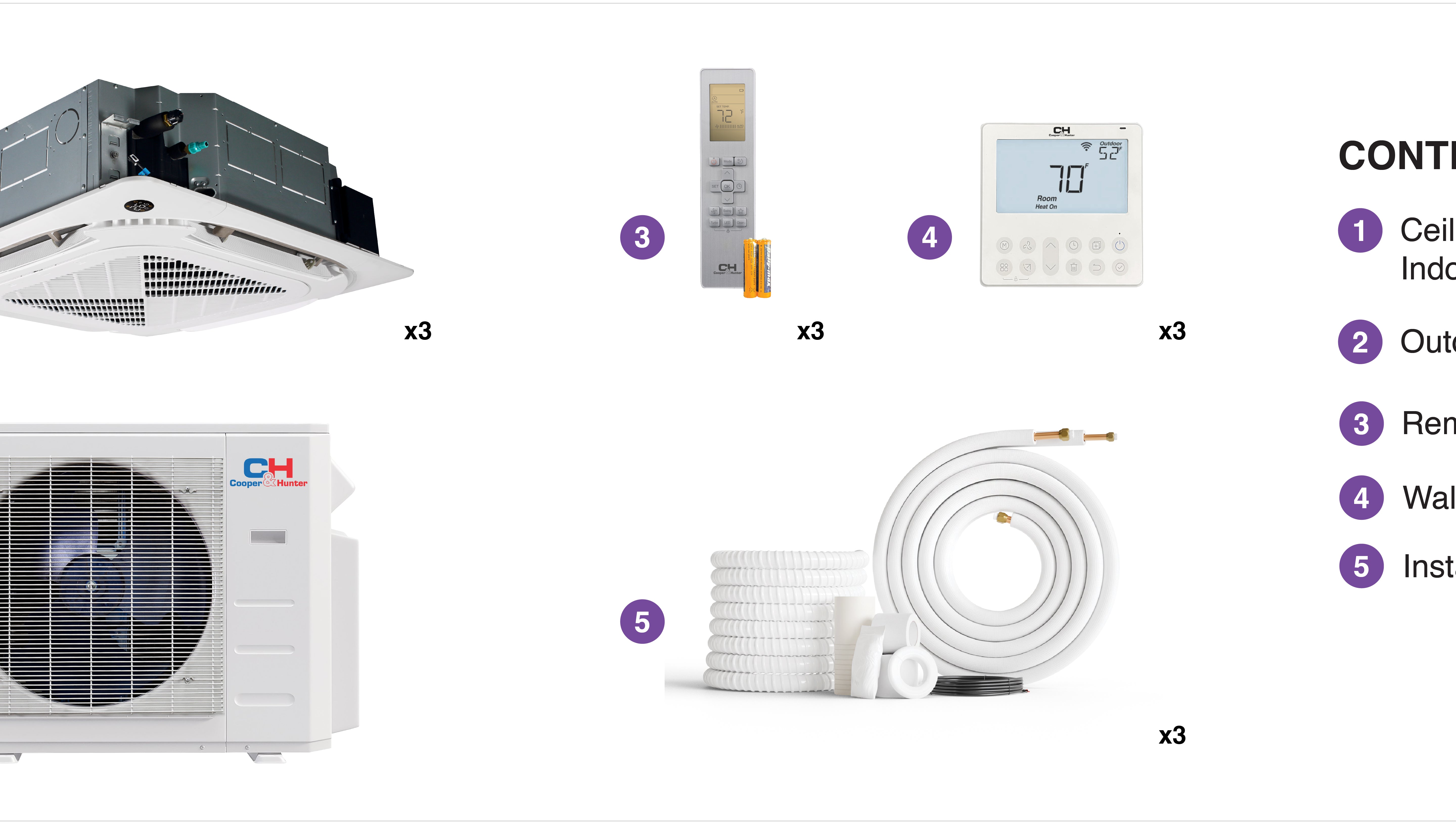 Cooper&Hunter’s Ceiling Cassette Units can be managed with a user-friendly remote control, the wall thermostat or the Cooper&Hunter optional phone application. This options offer precise temperature adjustments and optimal climate control for ultimate convenience.