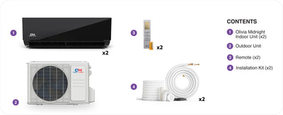 2 Zone 28,000 BTU Olivia Midnight Ductless Mini Split AC Wall Mounted 9K+18K