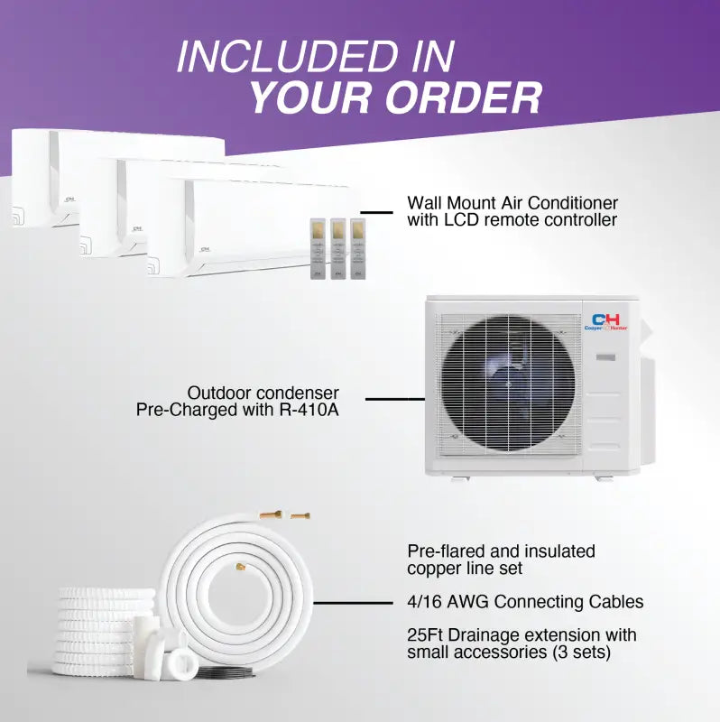 3 Zone 28,000 BTU OLIVIA Ductless Mini Split AC Wall Mounted 6k+12k+18k