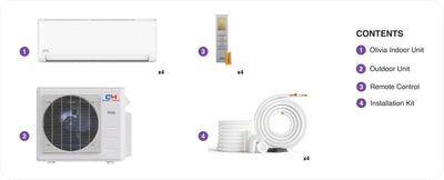 4 Zone 36,000 BTU OLIVIA Ductless Mini Split AC Wall Mounted 9k+9k+9k+18k