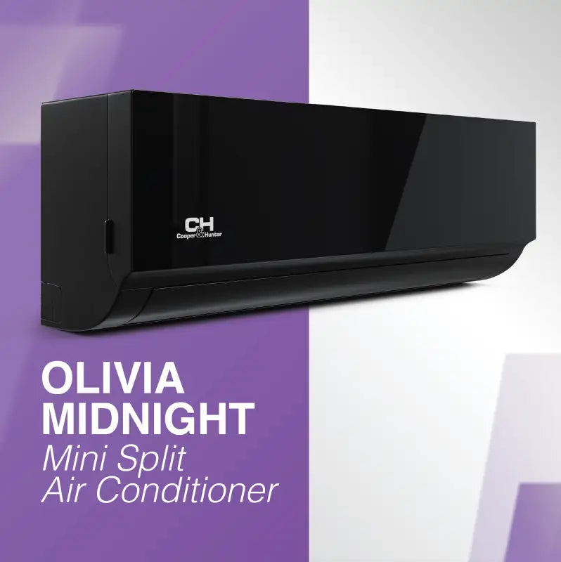 The Cooper&Hunter Olivia Midnight Unit blends contemporary design with high-performance heating and cooling. Its sleek, modern appearance complements any space while providing efficient climate control for year-round comfort.