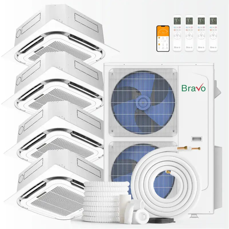 4 zone 42,000 BTU BRAVO Ductless Mini Split AC Ceiling Cassette 9k+9k+12k+12k