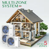 Bravo 42,000 BTU 4-Zone 9k+9k+9k+24k Universal Floor & Ceiling Console, 230V, R32 - Non-Ducted Mini Split Air Conditioner Heat Pump | No Kit