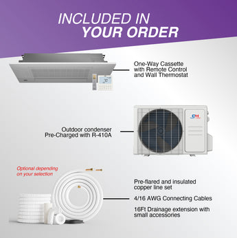 With your purchase, you receive a comprehensive MiniSplit system. MiniSplits4Less ensures you have everything needed for a seamless installation. Your package includes an Indoor Unit, Outdoor Unit, Remote Control, Manuals, optional LineSet, and a Smartkit (WIFI). We've meticulously thought of every detail to provide you with all the essentials for your installation.