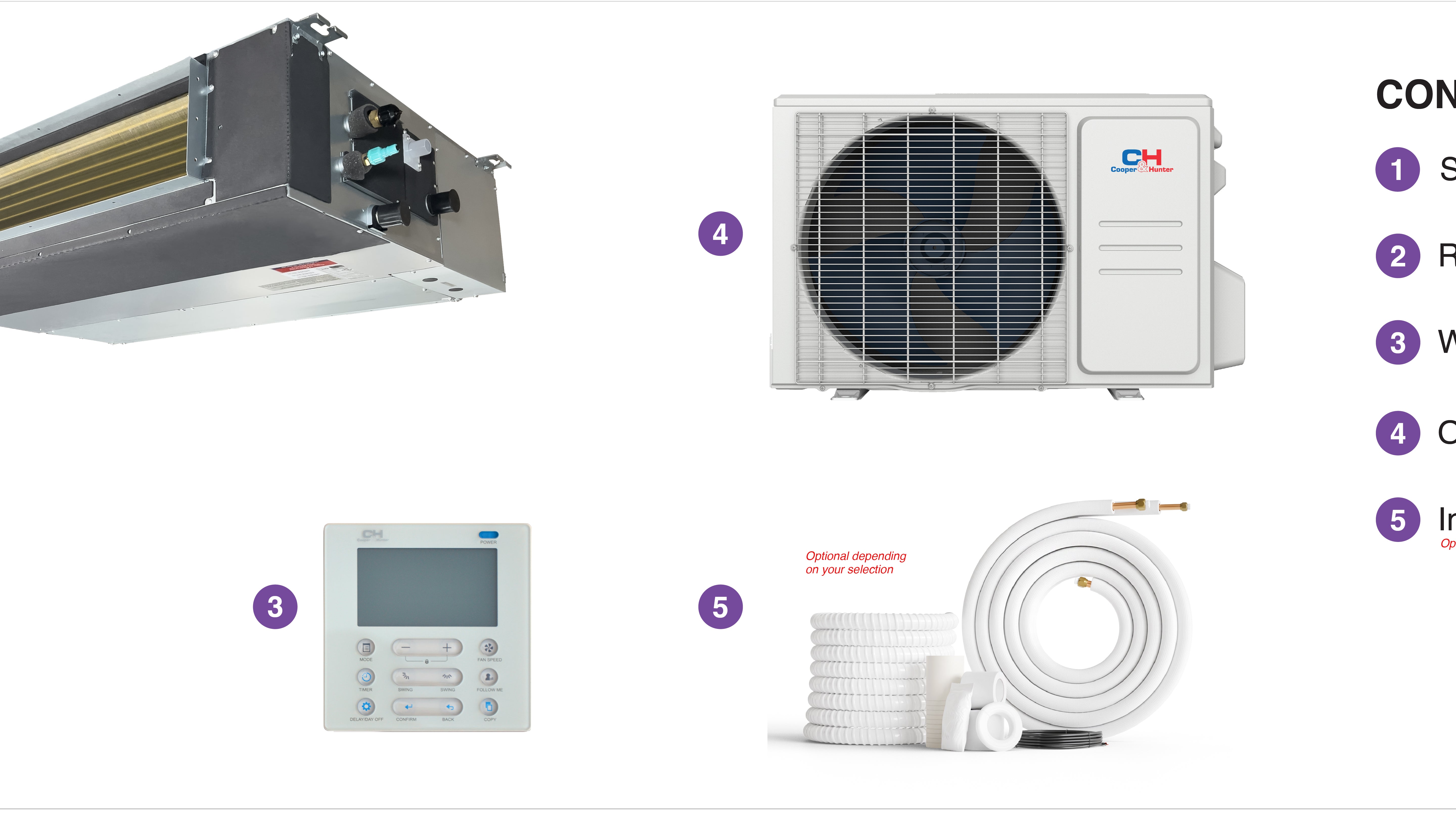 Cooper&Hunterâs Slim Duct Unit can be managed with a user-friendly remote control, the wall thermostat or the Cooper&Hunter optional phone application. This options offer precise temperature adjustments and optimal climate control for ultimate convenience.