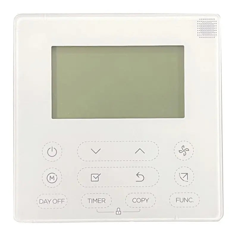 This weekly schedule wired thermostat offers multiple appearance options and is designed for easy control of ductless HVAC systems. Users can query the indoor temperature and view schedule settings when connected with a mini split wire. It also displays error codes and the current running state of the indoor unit. The LCD backlight allows easy operation even in a dark room.
